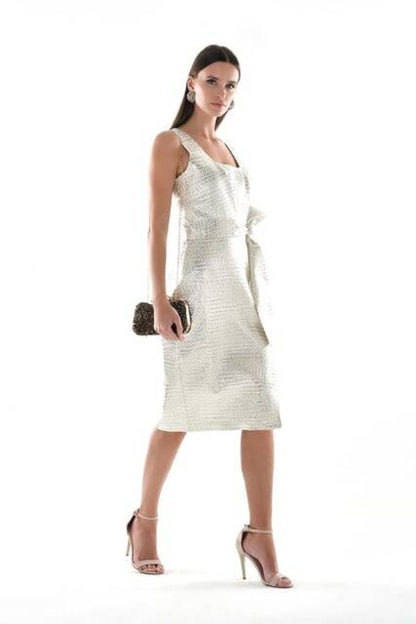 ROBE SANS MANCHE EN JACQUARD LAME LIGHT GOLD