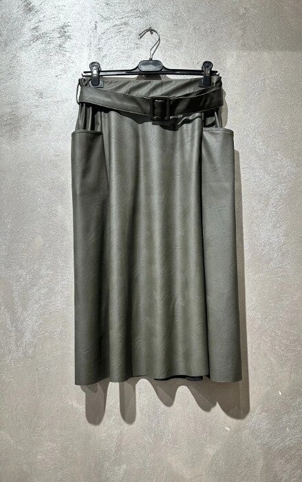 Jupe mi-long en simili cuir, dotée de poches latérales pratiques. Taille élastique pour un confort optimal, accompagnée d'une ceinture pour un ajustement parfait. Un style chic et moderne qui s'adapte à toutes les occasions.