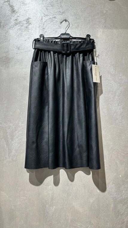 JUPE EN SIMILI CUIR AVEC POCHES LATERALES